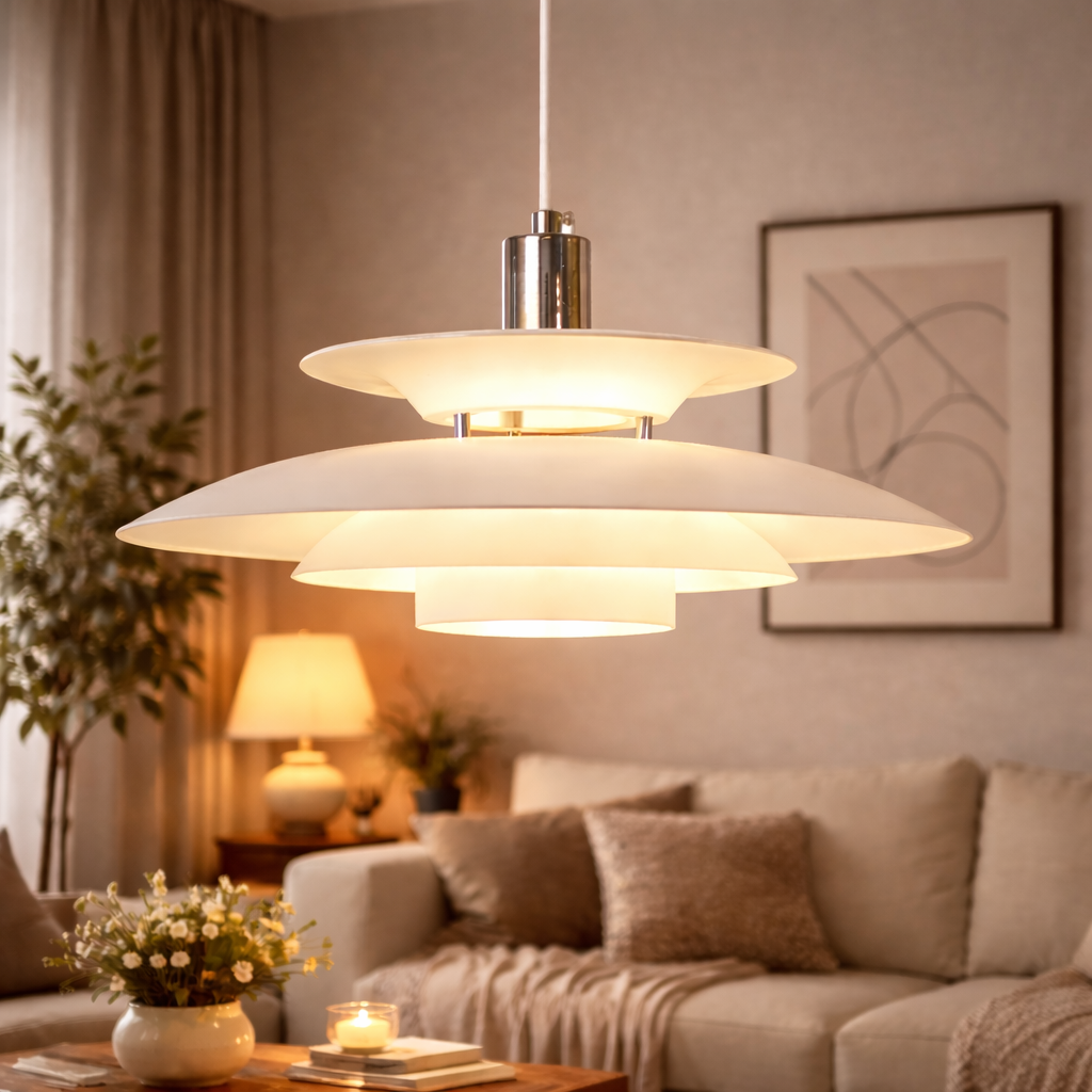 Make a stylish statement with this modern pendant light, featuring a layered, multi-tiered shade design that creates depth and visual interest. The thoughtfully structured form helps diffuse light evenly, offering comfortable and well-balanced illumination. Suspended from a sleek cord, its contemporary silhouette makes it an ideal choice for dining areas, kitchen islands, or living spaces seeking a refined, modern touch.