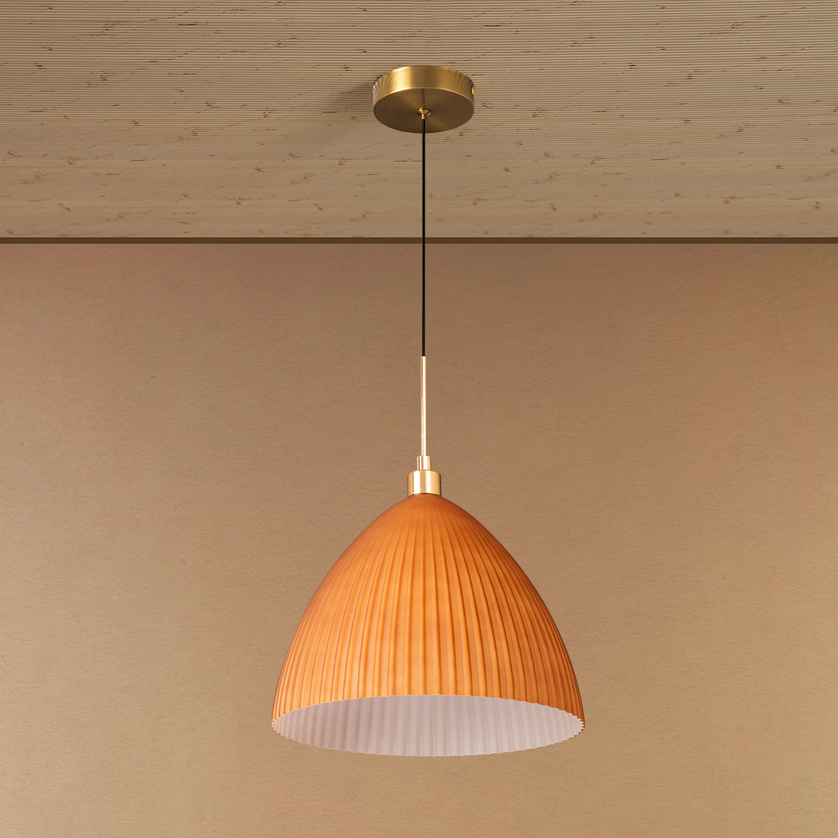 This ceiling light features a graceful dome-shaped silhouette with finely fluted detailing that adds texture and visual depth to its design. Created as a perfect light, home decoration item, and ceiling light for home, it emits a soft, even glow that enhances the ambiance with warmth and elegance. The structured pattern gives it a refined modern ceiling light and designer lighting piece appeal, making it both functional and decorative. Ideal for dining areas, kitchens, or contemporary interiors, this decorative lighting fixture delivers ambient lighting with a timeless and sophisticated charm.