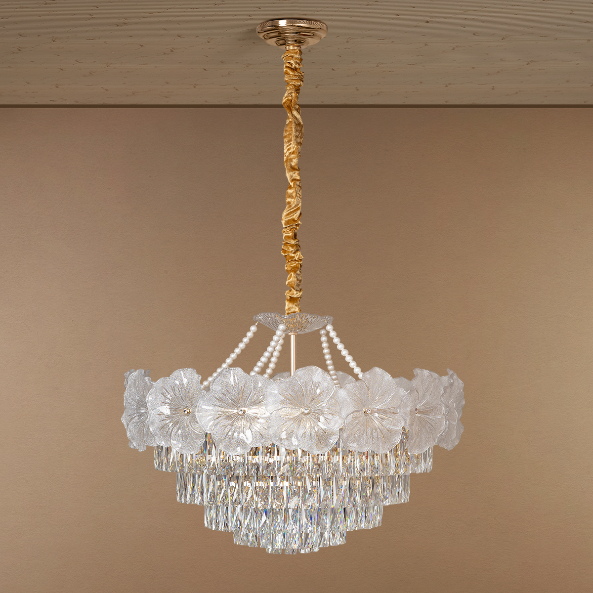 A ring of delicate blossoms crowns tapered tiers, casting a welcoming glow perfect as graceful Ceiling lights for Home that elevates everyday moments. Celebrated as a refined Home Decor Product, it highlights dining tables and seating areas with soft, flattering illumination. Shortlisted as Items for Home decoration, the layered silhouette adds height, rhythm, and a memorable focal point. This Decorative lights Item balances ambience and clarity for hosting, reading, and relaxed evenings. As chandelier Lights for Home, it merges poetic charm with practical brightness, completing interiors with polished elegance.