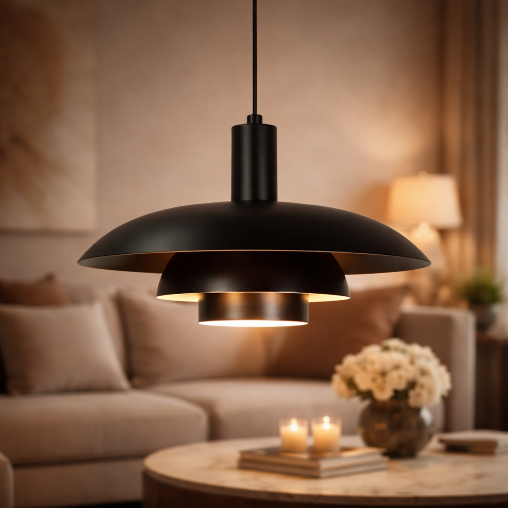 Create a bold, modern statement with this sleek pendant light, designed with a layered metal shade in a refined matte finish. The clean, geometric form directs light downward while softly diffusing it, making it ideal for task and ambient lighting alike. Suspended from a minimal cord, its contemporary design complements modern, industrial, and Scandinavian-style interiors, making it a perfect choice for dining areas, kitchen islands, workspaces, or stylish living spaces.