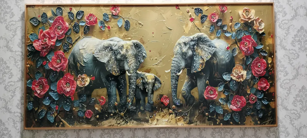 | Add vibrant elegance with this Crystal Glass Painting, an eye-catching choice among Wall Paintings for Home. A serene elephant trio amid radiant roses creates a striking centerpiece for any Home Decor Product lineup. As Items for Home decoration, it enhances lounges, dining areas, or entryways with depth and color balance. Choose this Wall Decoration Item to spark conversation and complement layered interiors. Gift-worthy and timeless, it elevates ambience with nature-inspired artis |