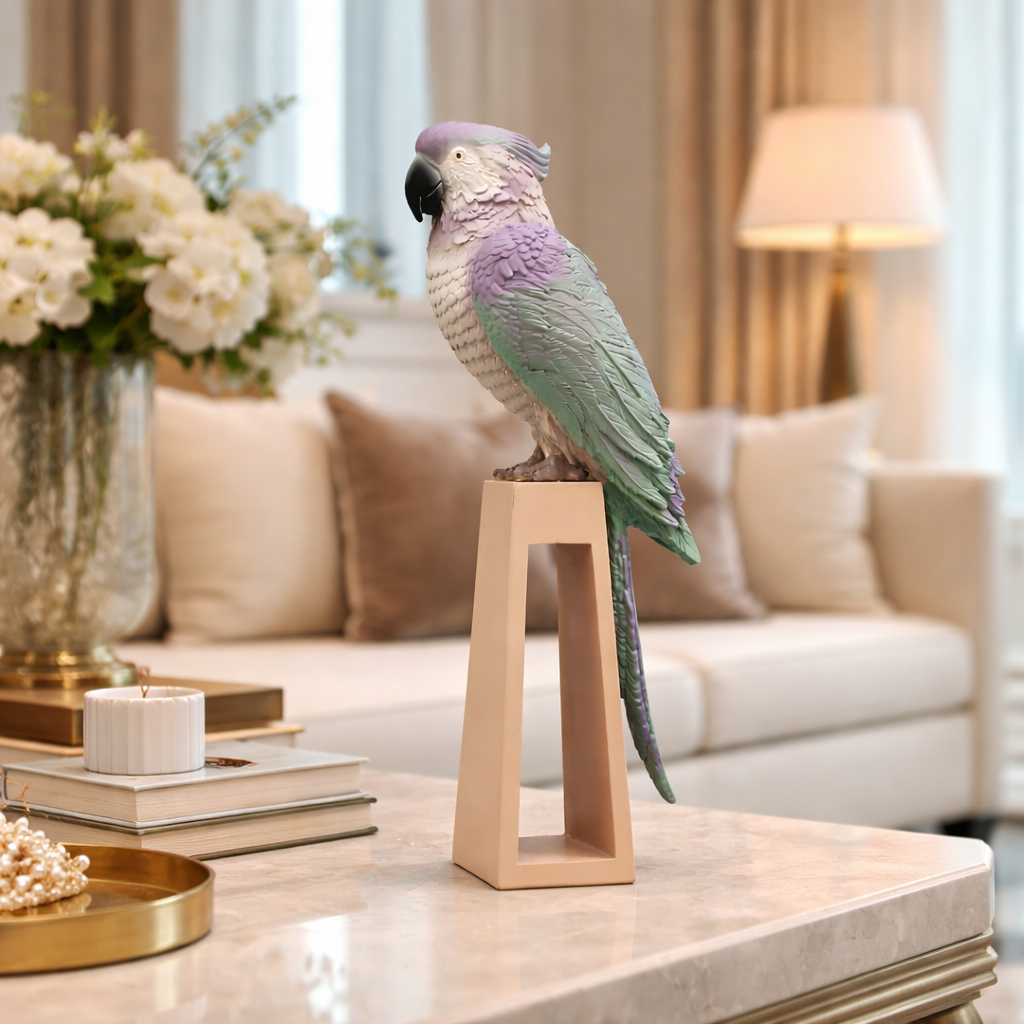 Add a soft and artistic charm to your interiors with this elegant Table Decorative Showpiece for Home. This Home Decor Product features a beautifully detailed parrot perched on a sleek geometric stand, creating a graceful and modern display. Perfect for coffee tables, consoles, or office desks, it adds a subtle pop of color and personality to any setting. Among stylish Items for Home decoration, this showpiece stands out for its delicate tones and contemporary design. Display it as a centerpiece or pair it with books and plants to create a refined tabletop arrangement.