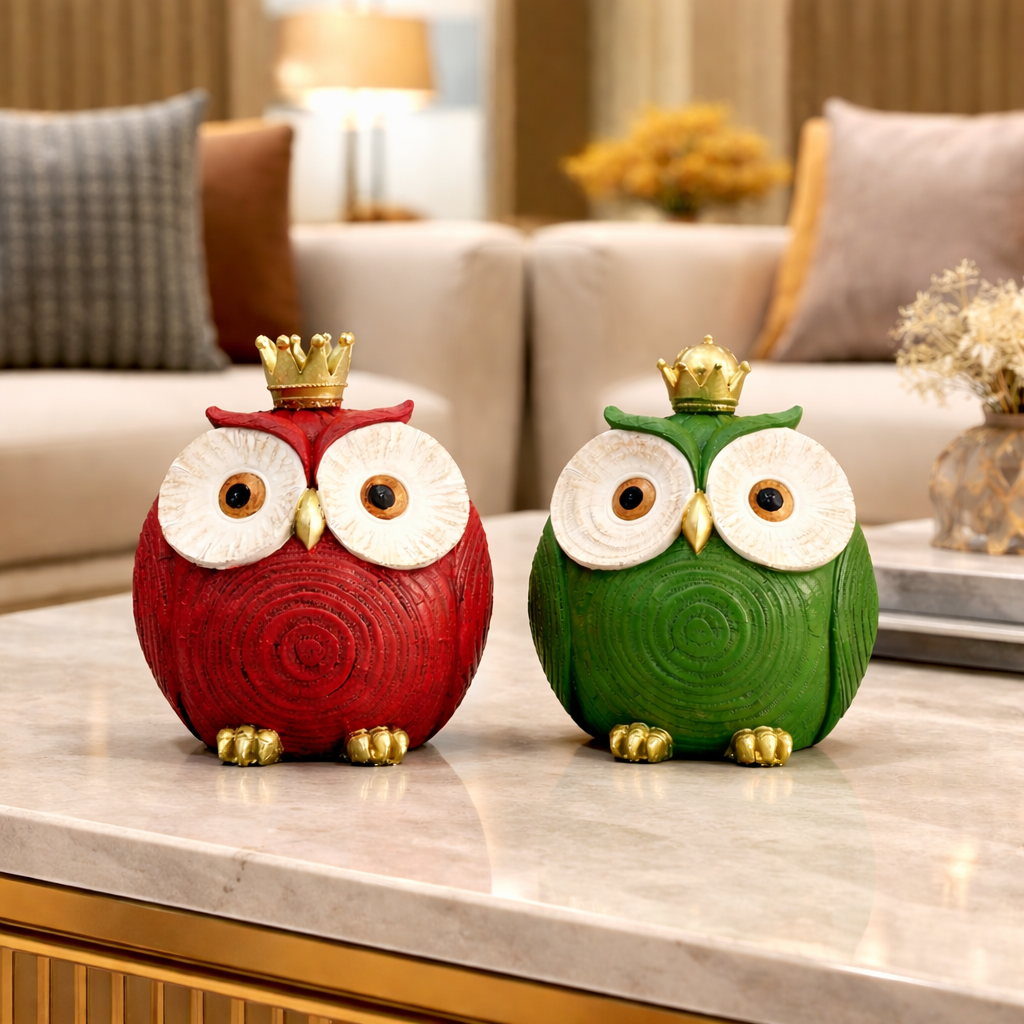 Add a touch of charm and positivity to your interiors with this delightful Table Decorative Showpiece for Home featuring a crowned owl with a royal presence. This elegant Home Decor Product symbolizes wisdom, luck, and prosperity, making it a meaningful accent for living rooms, bedrooms, or office desks. Its expressive design and vibrant color create a cheerful focal point that enhances the ambiance of any space. Perfect as an item for home decoration, this decorative showpiece blends playful character with refined styling, bringing warmth, personality, and a sense of good fortune to your home.