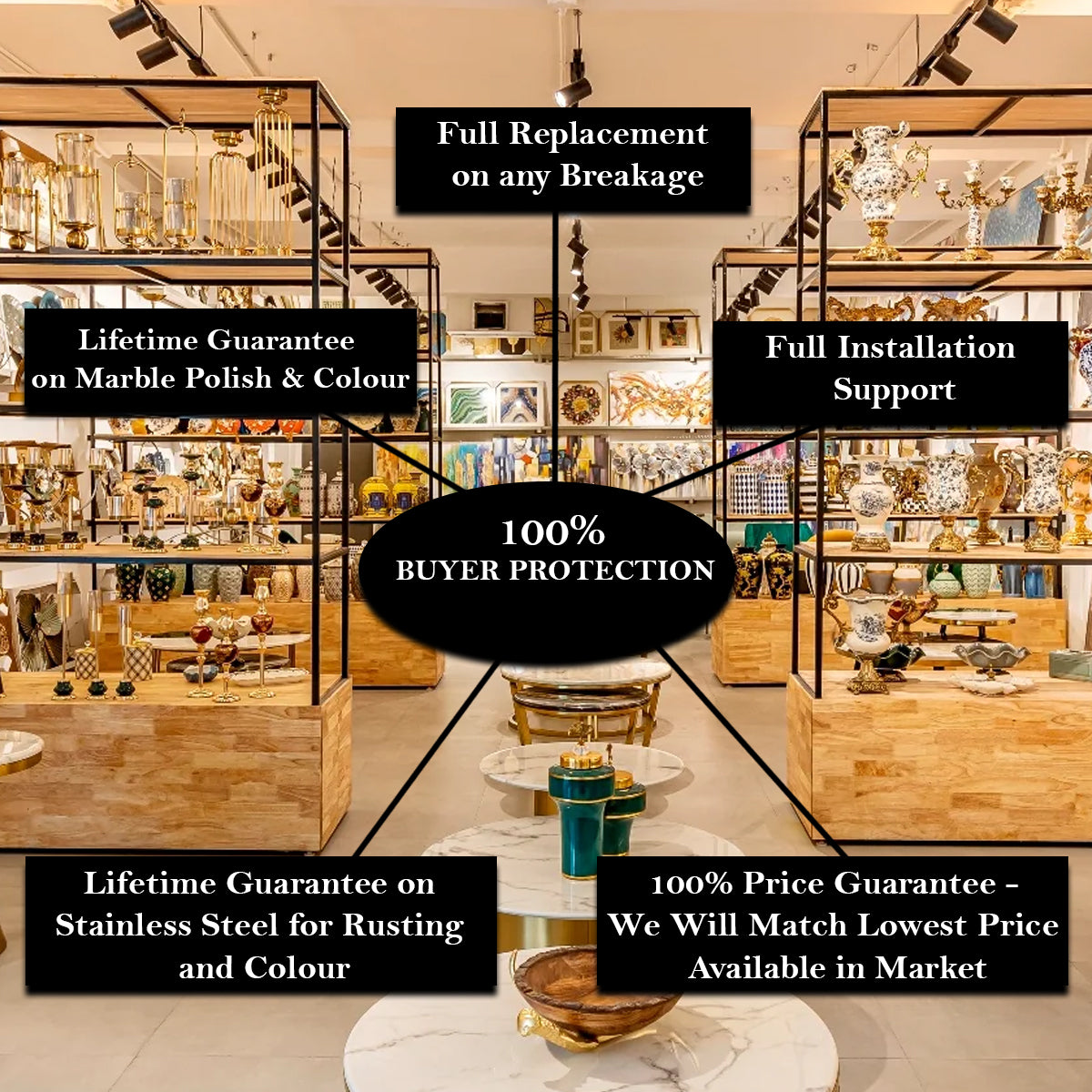 Order Today to get it between: and Dekor company's 7-day returns policy gives you an option to return or exchange items purchased on Dekorcompany.com for any reason within 7 days of receipt of the item. We only ask that you don't use the product and preserve its original condition, tags, and packaging. For Detailed Return and exchange policies please visit our Return and Exchanges page. There is No return or Exchanges on Sale products For any return , exchanges or Grievances please get in touch with our Customer service via Whatsapp / Phone / E mail (Mon-Sat , 10am-7pm ) Need help ordering? Chat With Us On WhatsApp Mobile : +91 7042499967 Email: support@dekorcompany.com Imported and sold By: Vida Hermosa Private Limited B-1/633 Janakpuri , New Delhi – 110058 Country of Origin : PRC Customer Service : Name : Satya Email : Support@dekorcompany.com Phone : +9599073739 Address : B-1/633 Janakpuri , New Delhi - 110058 Other accessories have been used only for styling purpose and we are selling the product which is clearly mentioned in the specification and the product name Orders are shipped within 24 hours. Delivery for all products Is free. All products are Inclusive of all taxes. |