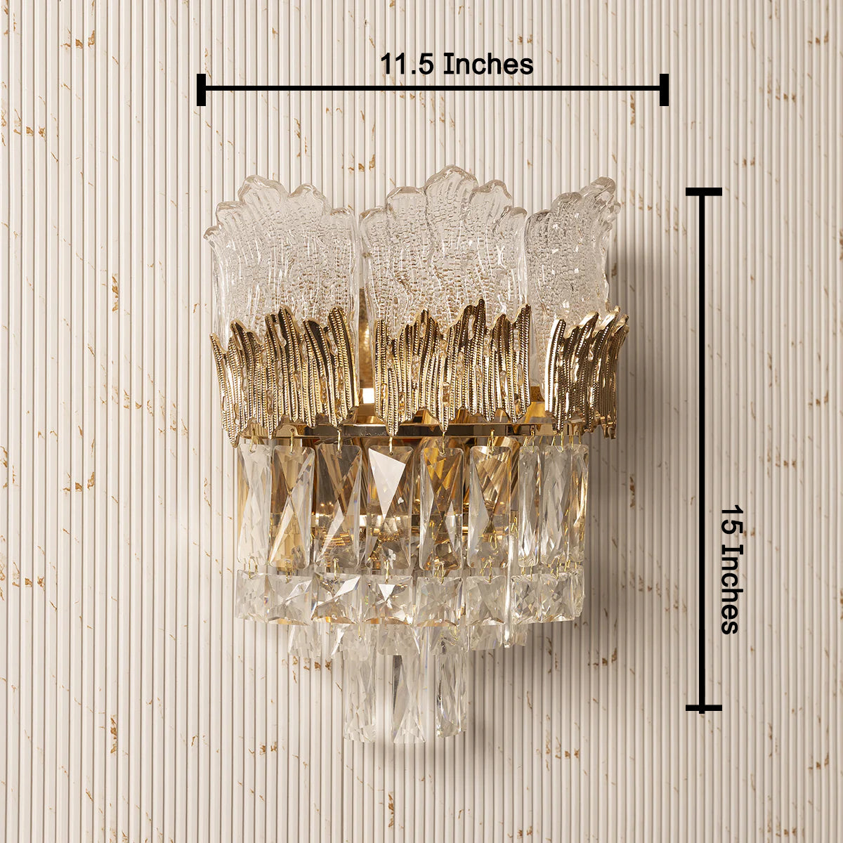 This luxurious Wall Light for Home features a dynamic wave-like design with cascading crystal elements and an ornate upper frame, emitting a brilliant glow. A stunning Home Decor Product, it enhances living rooms or hallways with its radiant charm. As a sophisticated Wall Lamp for home, it stands out among Lights for Home, offering elegant illumination and a bold statement. The layered structure and sparkling accents create a captivating focal point, blending functionality with style. Easy to install, it transforms any space into a luxurious retreat, perfect for adding warmth and sophistication to diverse interior settings.