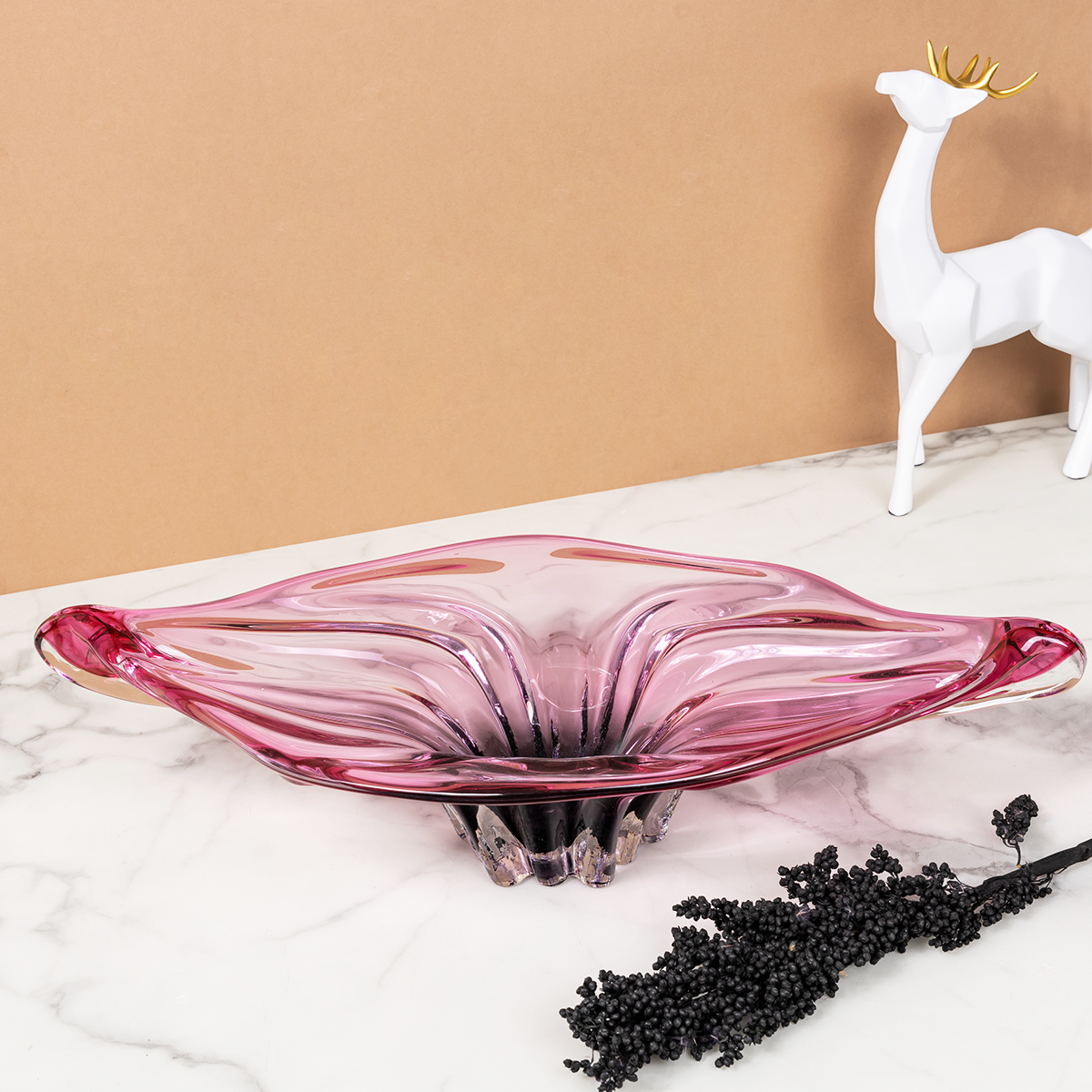 This opulent showpiece, handblown from glass, features intricate detailing and rich hues that evoke the luxury of an exotic oasis. Its lavish design and sumptuous beauty make it a striking addition to any tabletop or home decor, adding a touch of indulgence to your living space. |