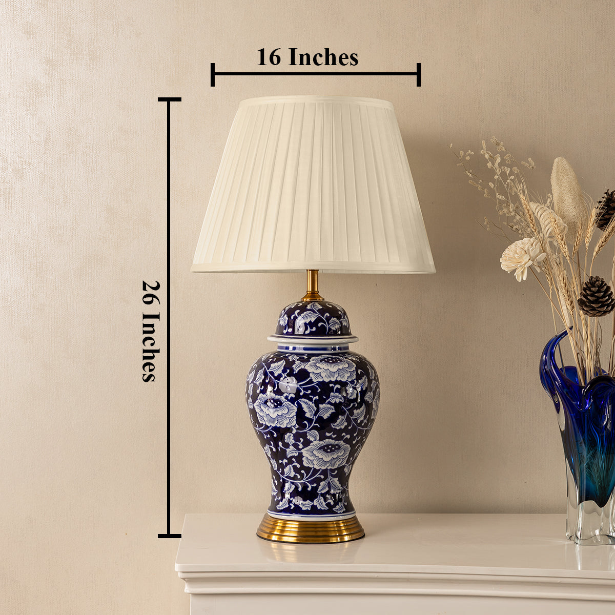 Enhance your interior with this designer table lamp for home that beautifully blends classic charm with modern elegance. Its graceful silhouette and intricate floral pattern create a striking focal point, making it a perfect home decor product for living rooms, bedrooms, or office spaces. The soft glow adds warmth and sophistication, while the refined design makes it an eye-catching table decoration item. Ideal for those who appreciate stylish items for home decoration, this lamp complements both traditional and contemporary interiors, bringing a sense of balance, comfort, and timeless beauty to your space.