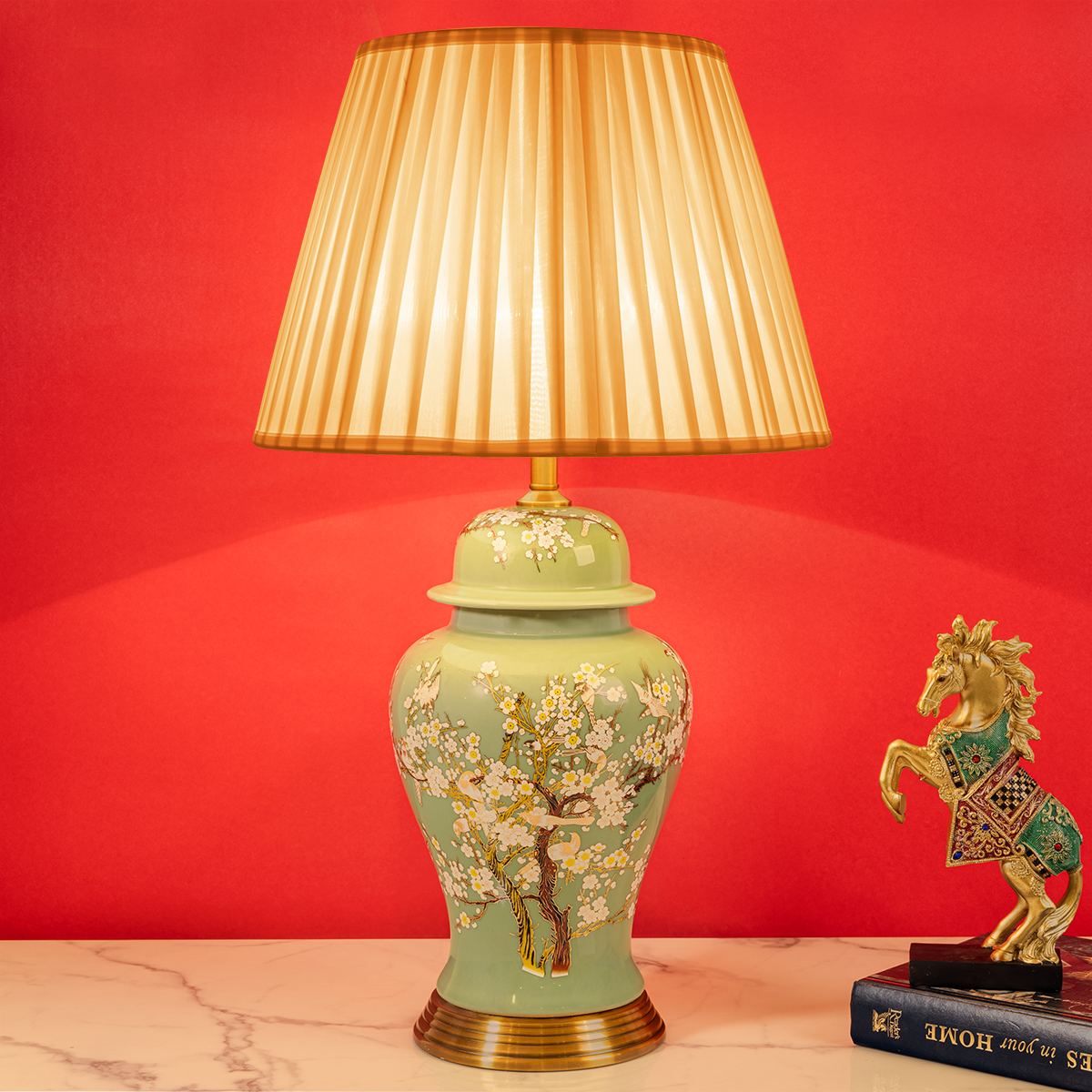 Illuminate your space with the Elegant Night Bloom Lamp. This lamp, with its delicate floral patterns, is a perfect addition to your table decor items. Ideal for home decoration, it adds a touch of elegance and sophistication to any room. The soft glow it provides is perfect for creating an ambinece in any room. The classic design makes it a standout piece in your collection of table lamps. Enhance any room's decoration with this beautiful lamp, combining style and practicality.