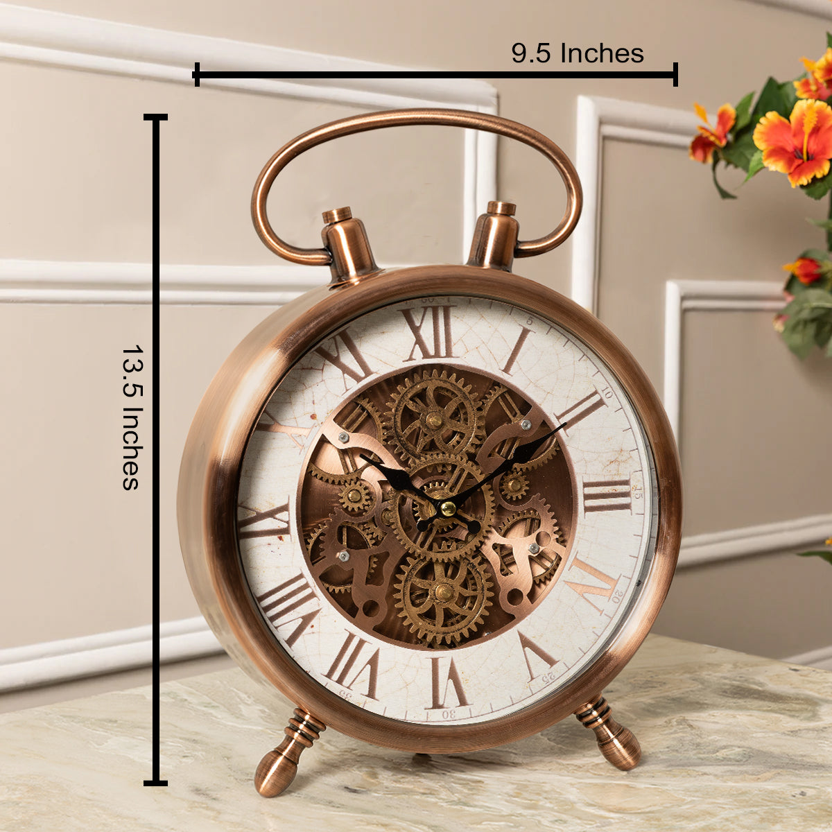 Add a touch of timeless charm to your space with this beautifully designed Table Clock for Home, crafted to elevate your interiors with classic elegance. Featuring an exposed gear-style design and Roman numeral dial, this clock brings a perfect blend of vintage inspiration and contemporary décor appeal.
