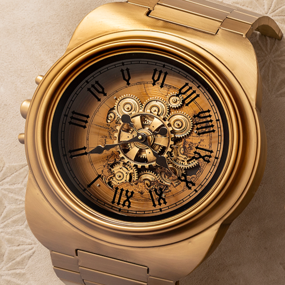 Balanced Home Time Tea Table Clock With Moving Gear Mechanism (Steel Body) - Small