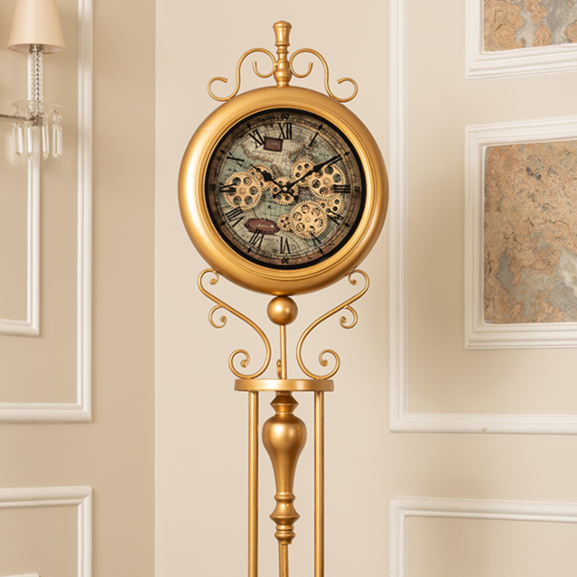Victorian Timeless Tradition Luxury Designer Standing Clock With Moving Gear Mechanism (Steel Body)