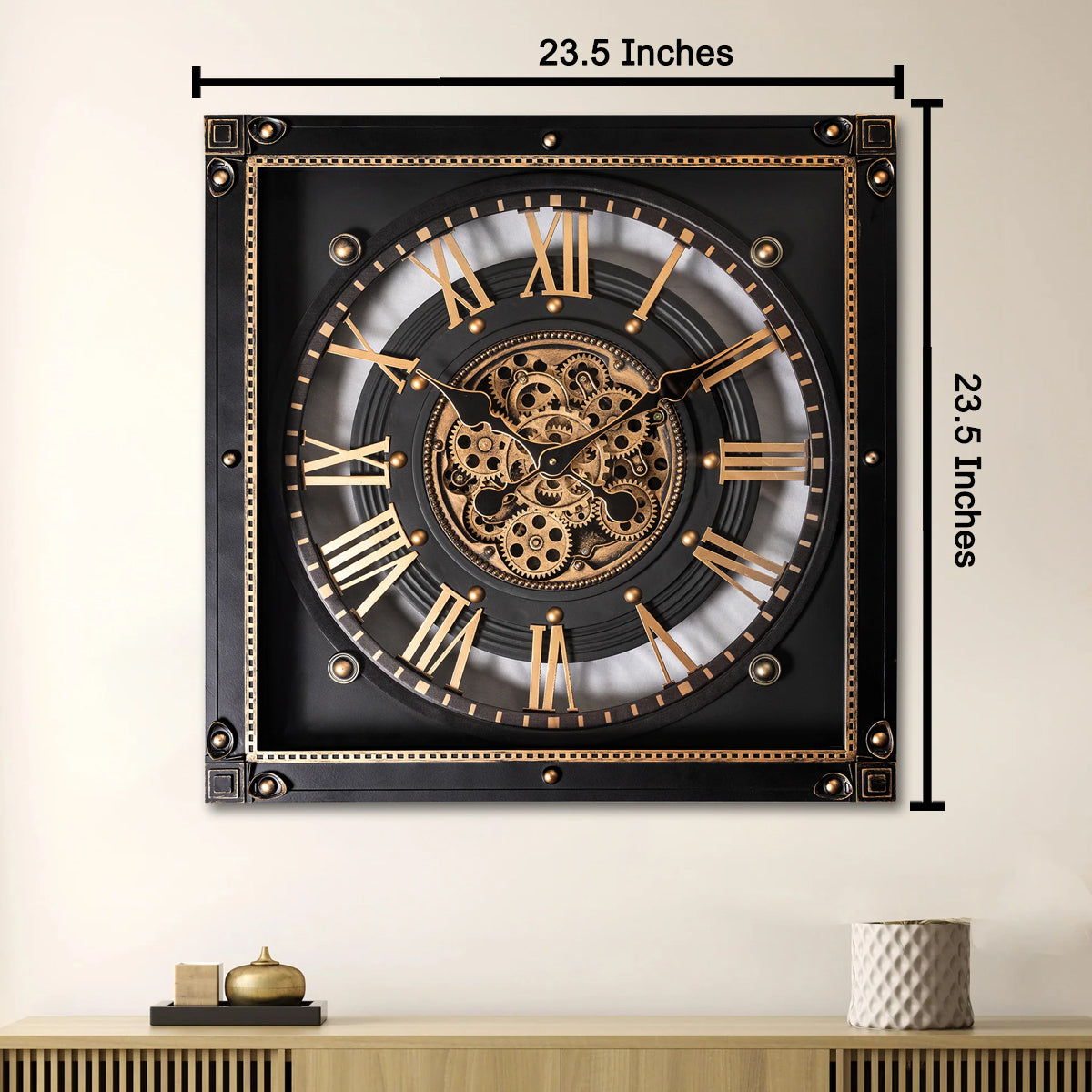 Command attention with a Wall Clock for Home that frames time inside a bold square border and a layered gear core for sculptural drama. This Home Decor Product elevates living rooms, foyers, and offices with editorial presence and clear readability. As a Wall Decoration Item, it anchors gallery walls or stands solo above consoles with confident poise. Count it among Items for Home decoration that blend classic numerals with modern depth, turning everyday time checks into design moments that bring rhythm, character, and a curated finish to any interior.