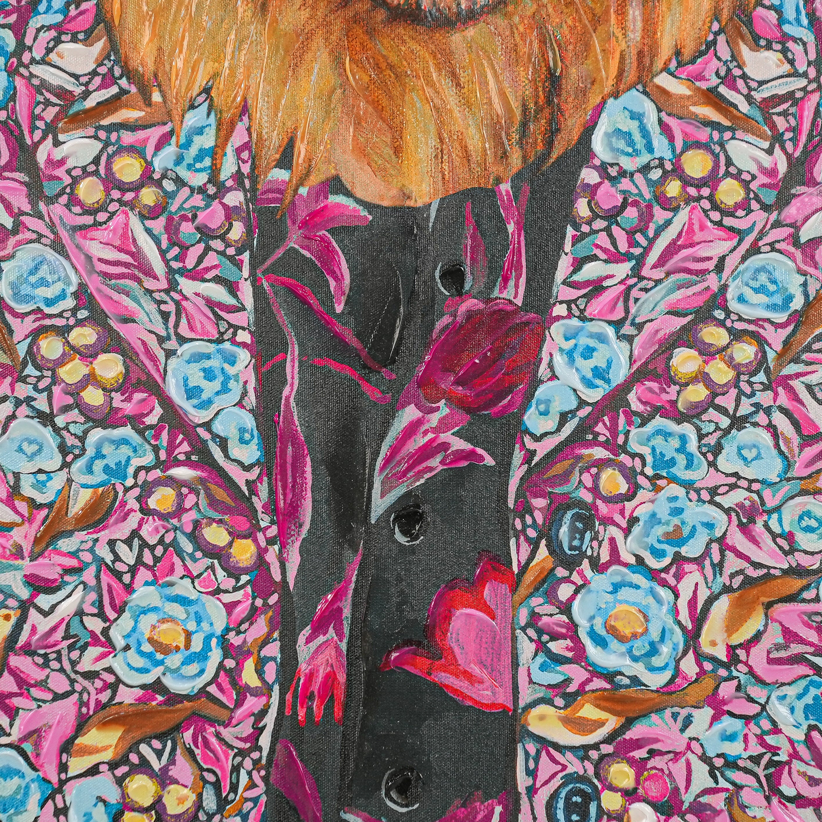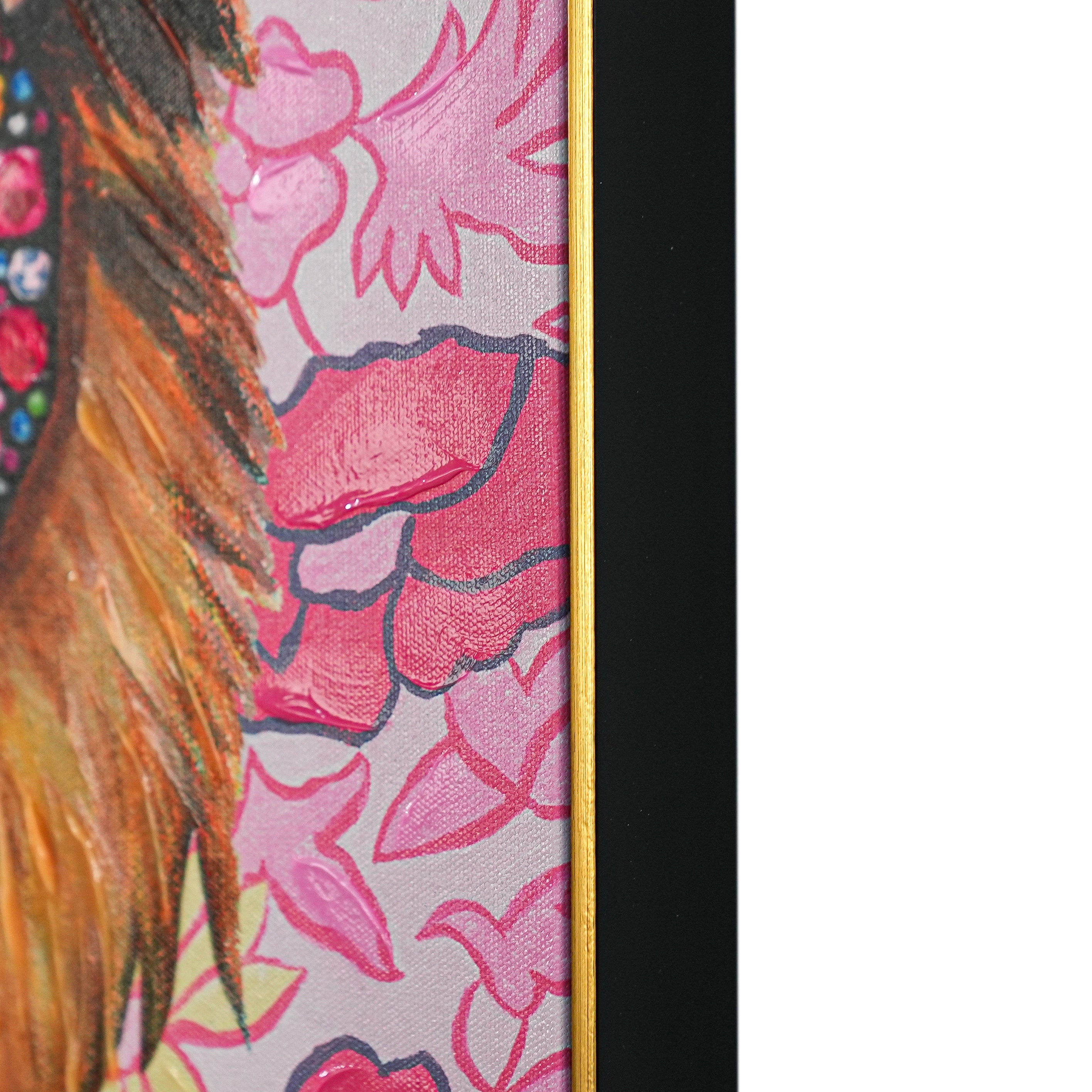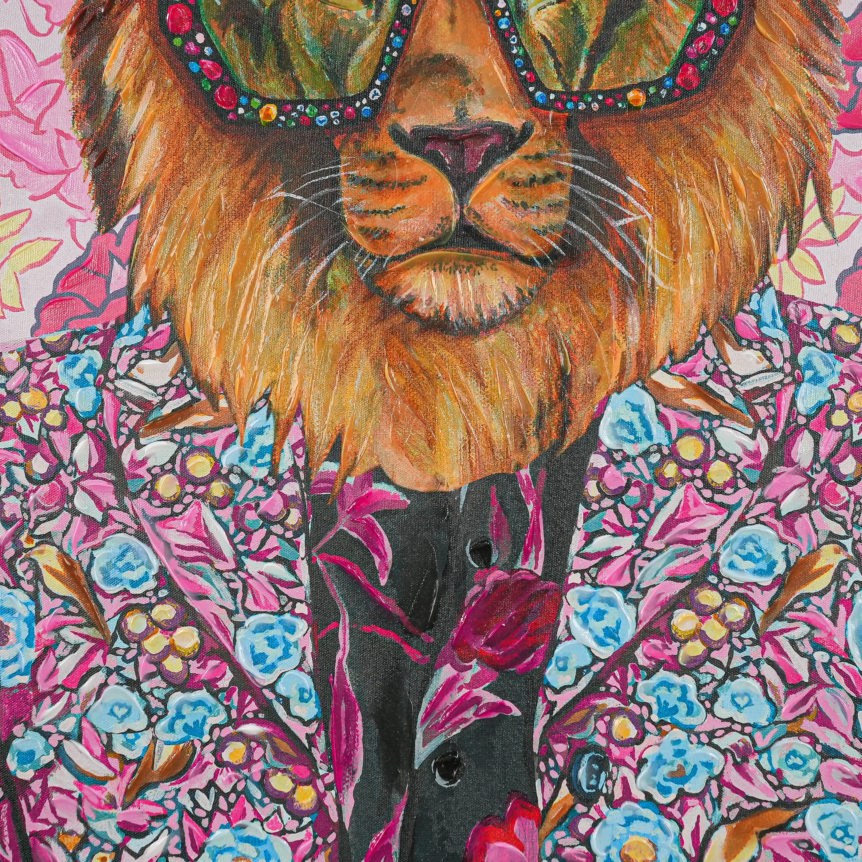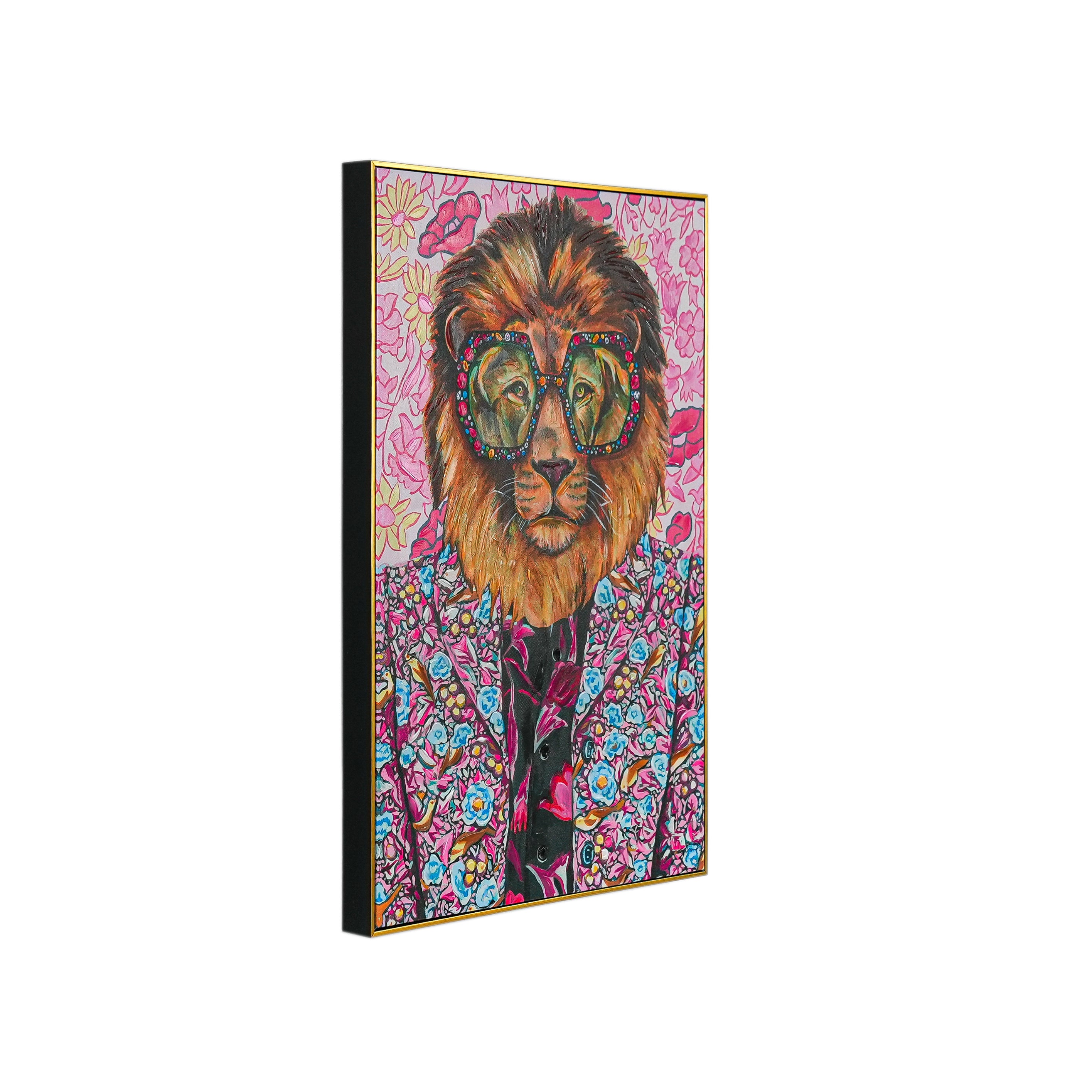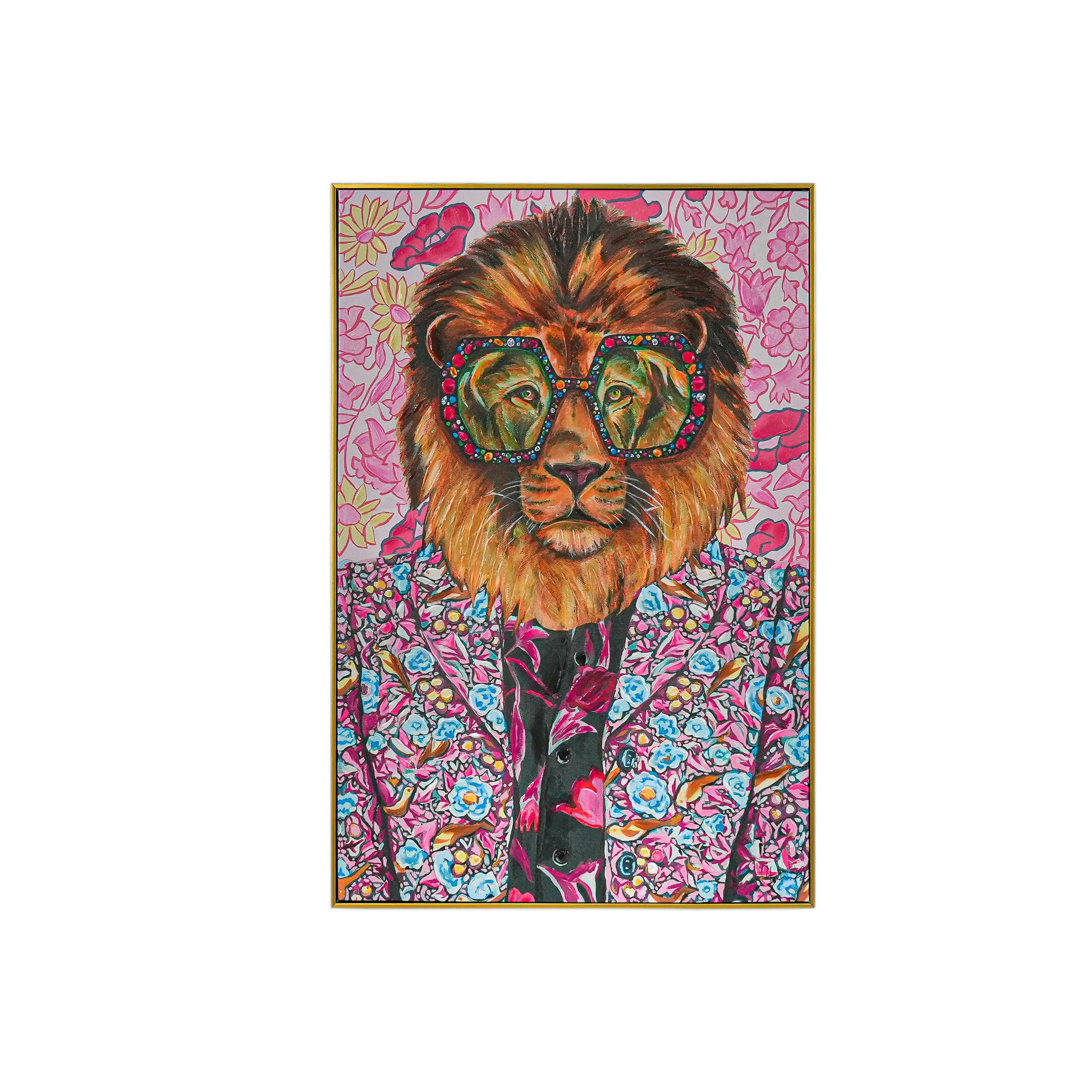 This eye - catching decorative painting showcases a majestic lion sporting oversized, rhinestone - encrusted sunglasses that exude luxury. The lion is dressed in a vibrant, floral - patterned blazer layered over a dark shirt, set against a background bursting with colorful blooms and playful lip motifs. With its bold color palette, whimsical yet retro - chic aesthetic, this artwork infuses spaces with personality, sophistication, and a dash of playful glamour—perfect for those who crave unique, statement - making home decor.