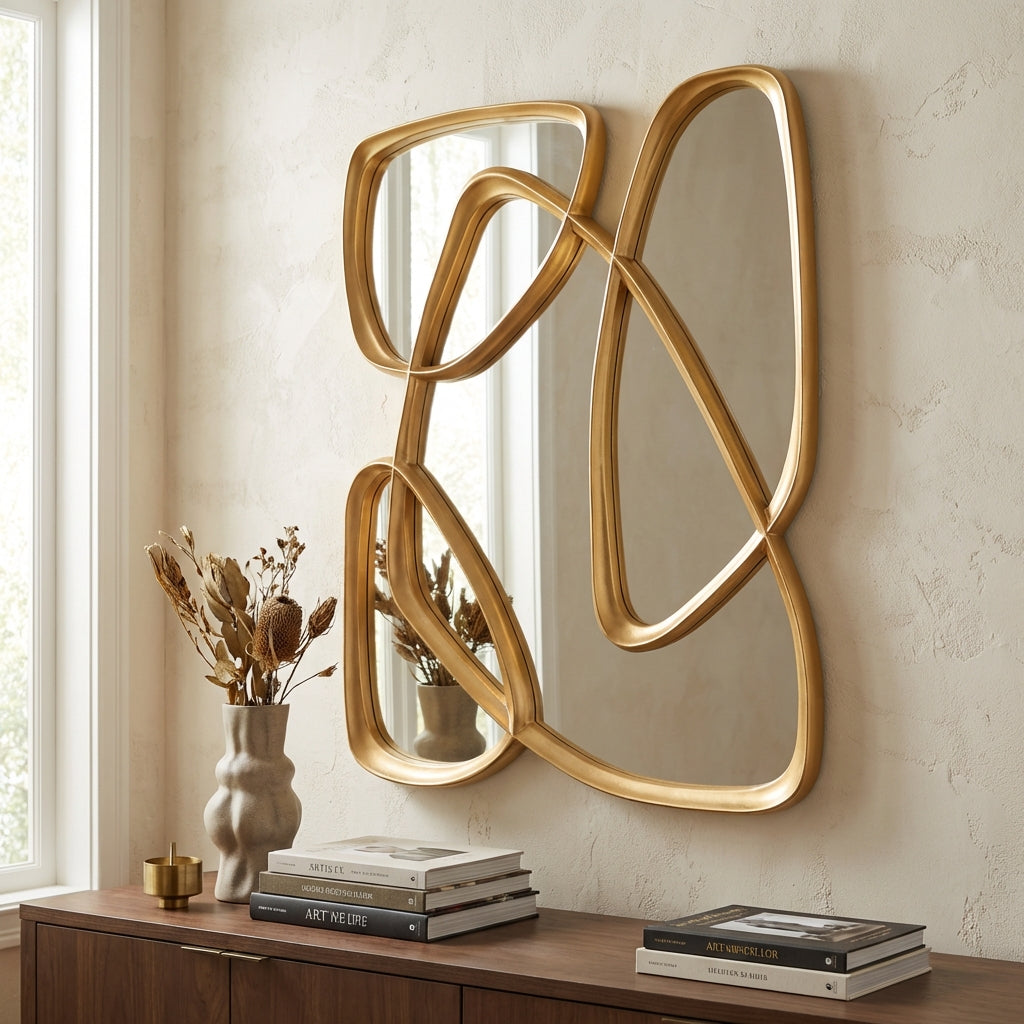 The Infinity Loop Wall Mirror is a striking designer Wall Mirror for Home that transforms empty walls into an artistic statement. Designed with fluid overlapping forms, this Home Decor Product adds depth, light, and visual movement to any space. Perfect as a Wall Decoration Item for living rooms, bedrooms, dining areas, or entryways, it blends modern elegance with timeless charm. This mirror works beautifully as a Table Decoration Item alternative when styled above consoles or sideboards. Among premium Items for Home decoration, it reflects both style and personality, enhancing interiors with sophistication and contemporary appeal.