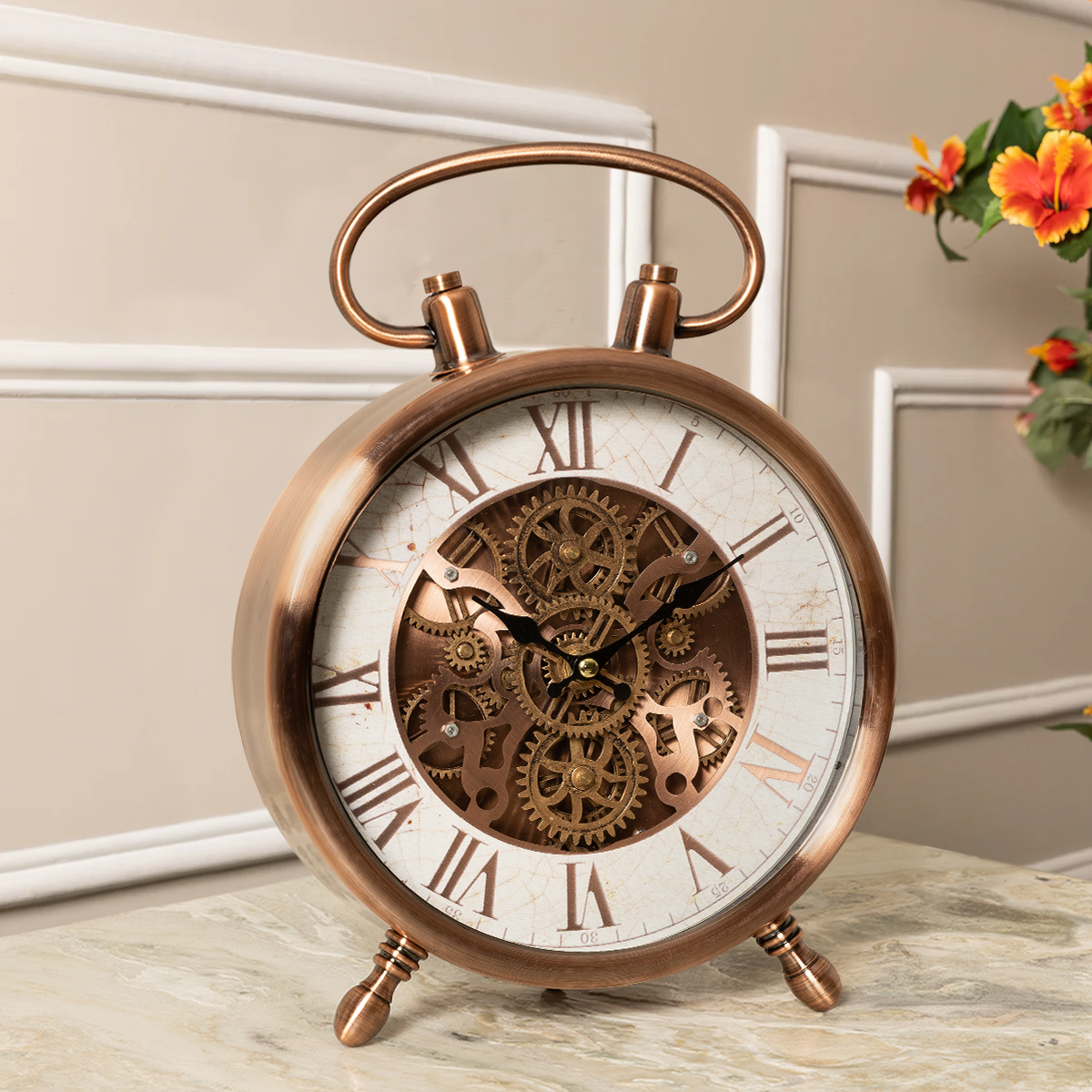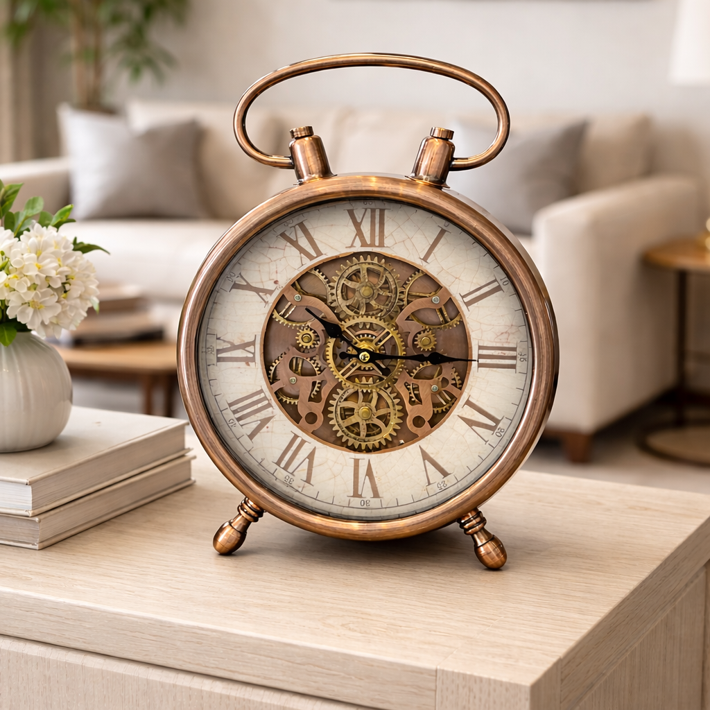 Add a touch of timeless charm to your space with this beautifully designed Table Clock for Home, crafted to elevate your interiors with classic elegance. Featuring an exposed gear-style design and Roman numeral dial, this clock brings a perfect blend of vintage inspiration and contemporary décor appeal.