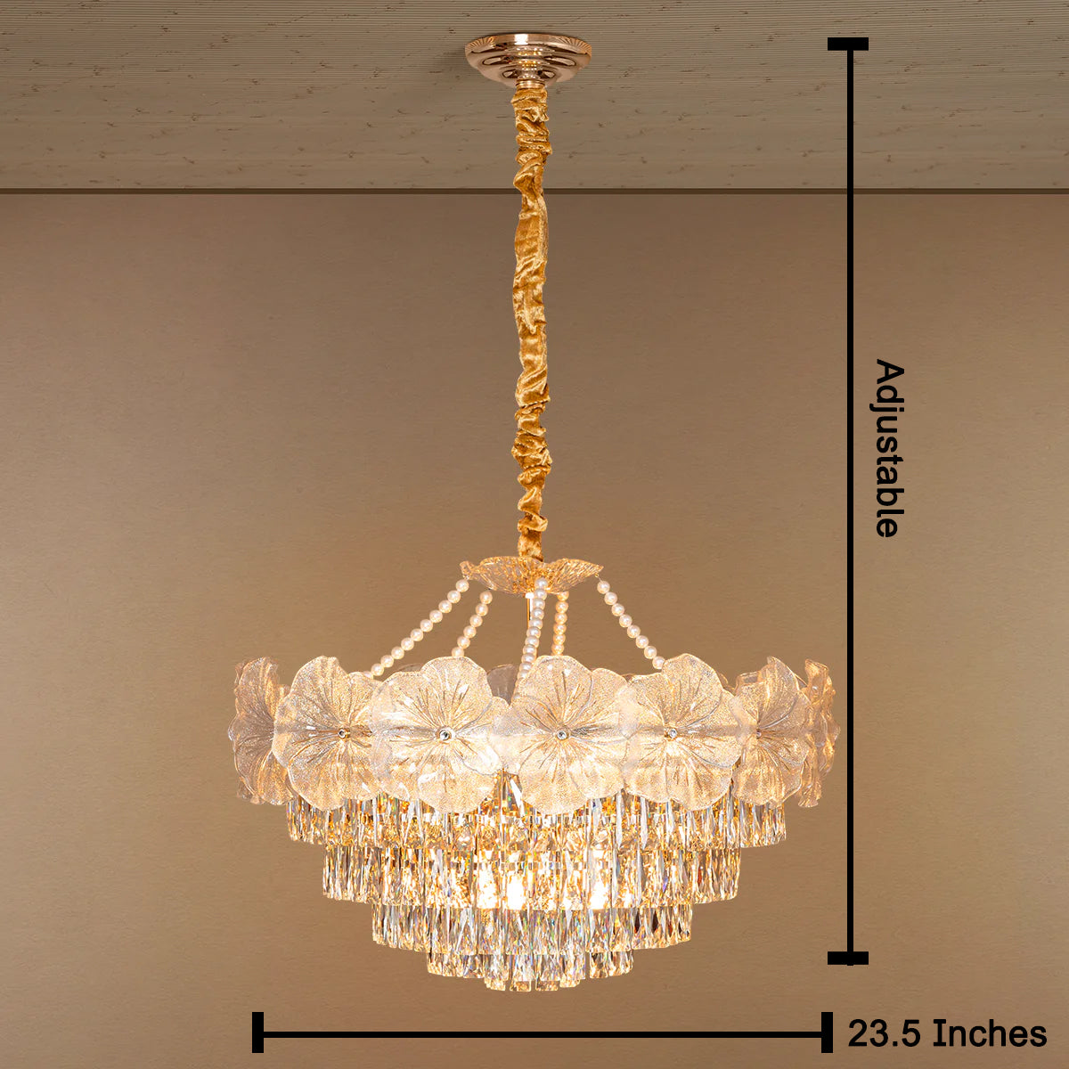 A ring of delicate blossoms crowns tapered tiers, casting a welcoming glow perfect as graceful Ceiling lights for Home that elevates everyday moments. Celebrated as a refined Home Decor Product, it highlights dining tables and seating areas with soft, flattering illumination. Shortlisted as Items for Home decoration, the layered silhouette adds height, rhythm, and a memorable focal point. This Decorative lights Item balances ambience and clarity for hosting, reading, and relaxed evenings. As chandelier Lights for Home, it merges poetic charm with practical brightness, completing interiors with polished elegance.