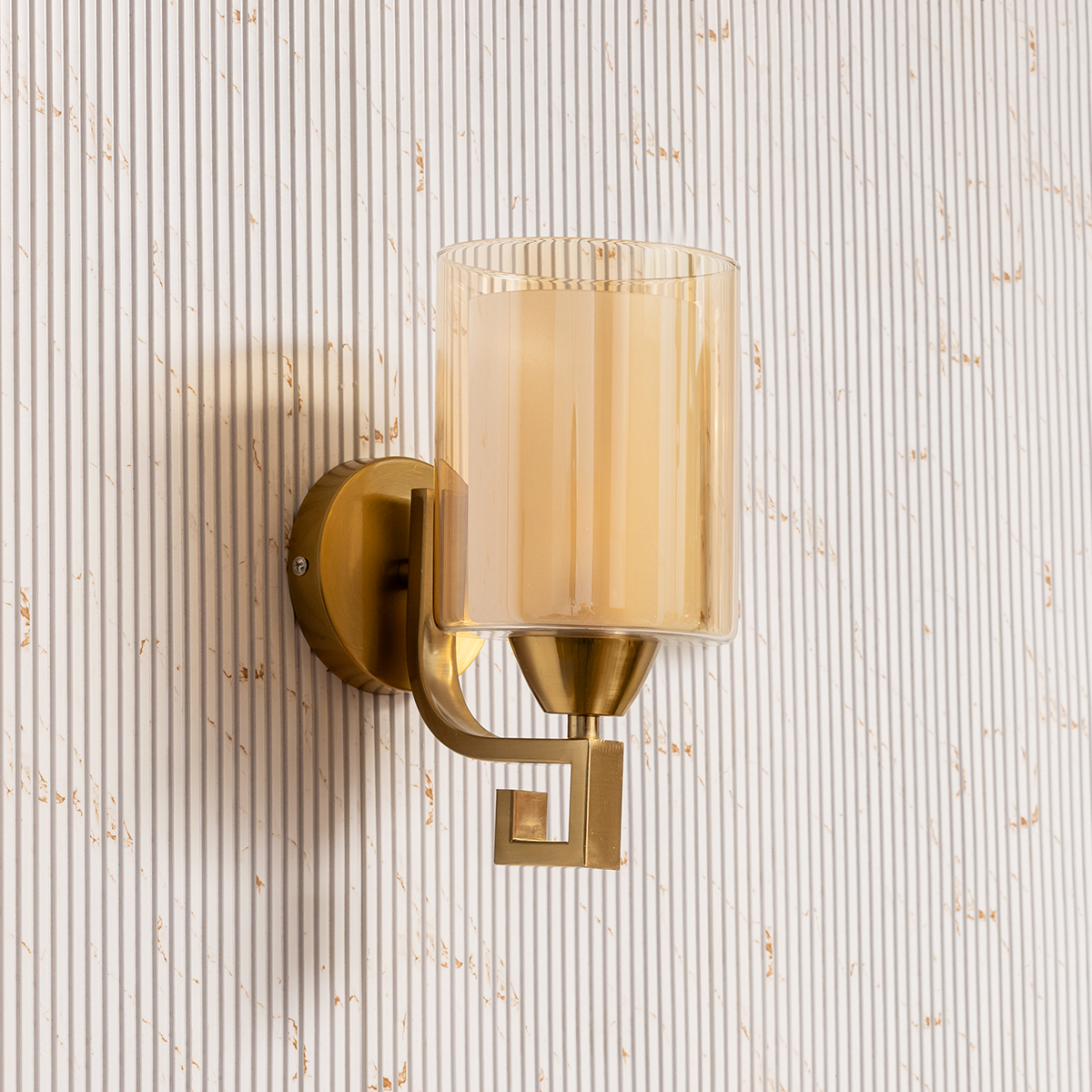 A refined statement of warmth and sophistication, the Aurora Amber Glass Wall Light features a beautifully tinted cylindrical glass shade paired with a sleek brushed brass finish. The soft amber glow creates a cozy and inviting ambiance, while the modern geometric arm adds a subtle contemporary touch. Perfect for bedrooms, hallways, living rooms, or boutique hotel interiors, this wall light blends elegance with functional charm.