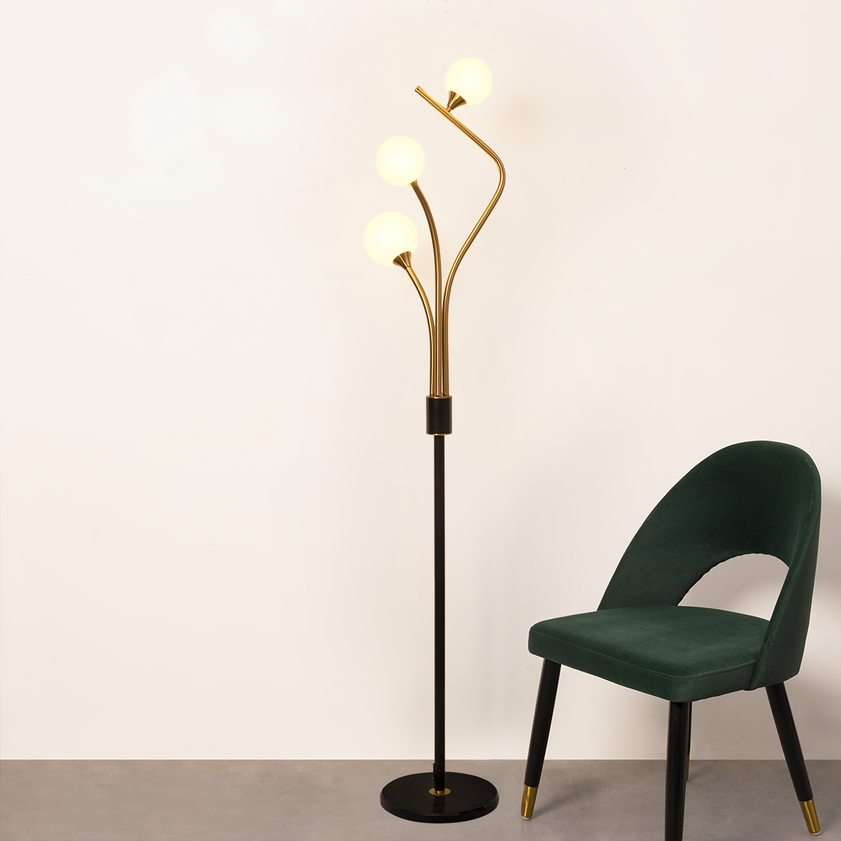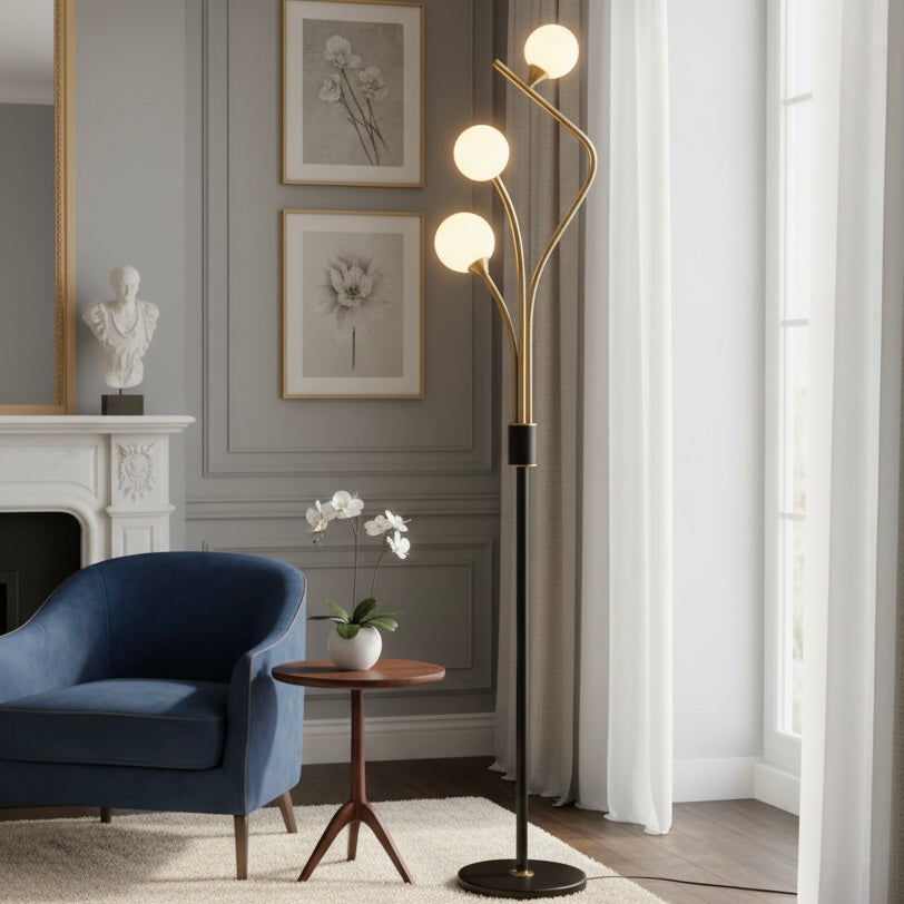 Three ascending globes create a gentle cascade of light, delivering a calm, contemporary atmosphere perfect for a statement Home Decor Product. It excels among Floor lamps for Home by brightening corners and drawing the eye upward, ideal for compact spaces needing visual lift. This Designer lamp for home supports cozy reading and work sessions as a reliable Study Lamp for Home with comfortable, even illumination. Position it next to a lounge chair or window dressing to frame the space with elegant curves and inviting warmth.