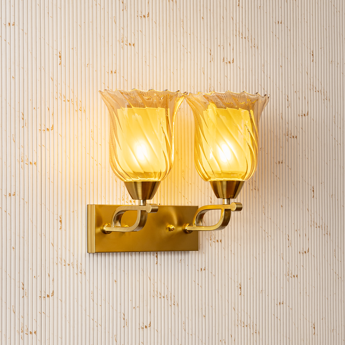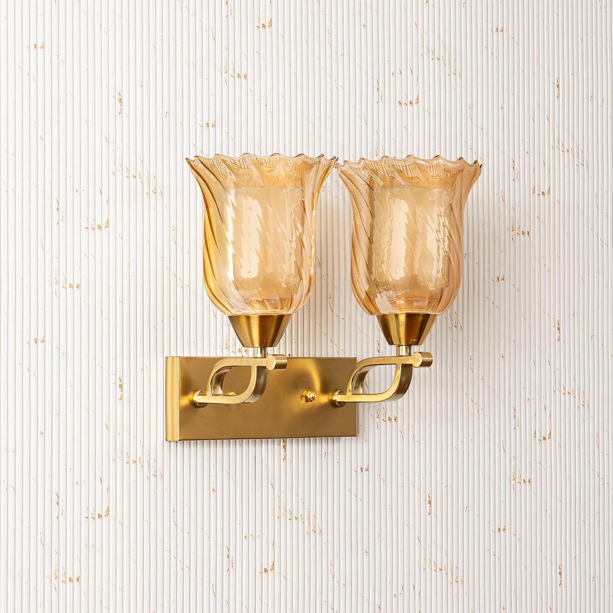 This beautifully designed dual wall light captures a sense of timeless elegance with its graceful and decorative silhouette. Featuring two flared shades with delicately sculpted edges, it casts a warm and inviting glow that enhances the ambiance of refined interiors. The gently curved arms extend from a clean rectangular backplate, creating a balanced and harmonious composition. Its symmetrical structure makes it ideal for bedrooms, hallways, living areas, or upscale hospitality settings where layered lighting adds depth and sophistication. The flowing contours and soft illumination work together to create a welcoming atmosphere while adding a touch of grandeur to the wall. Perfect as both a functional lighting solution and a statement accent piece, this fixture elevates any space with classic charm and understated luxury.