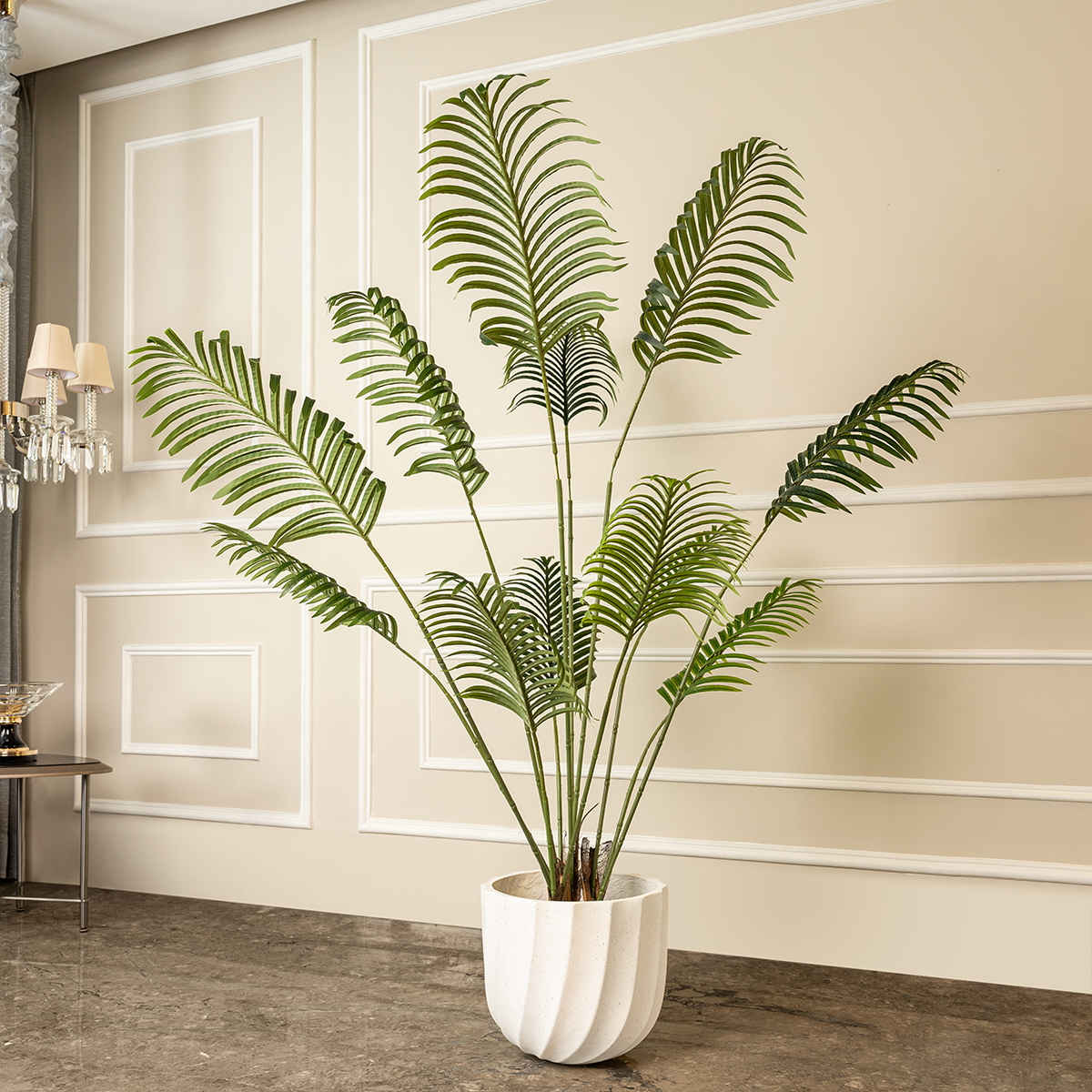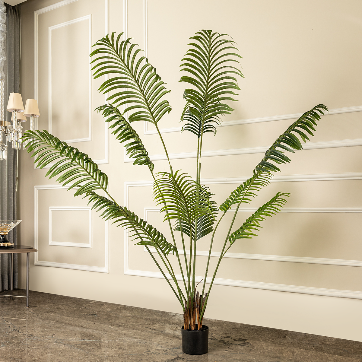 | The Verdant Elegance Palm is an artificial plant that adds a touch of natural beauty to your home decor. This artificial tree features realistic, lush fronds that make it a standout among home decoration items. Perfect for creating a serene and inviting atmosphere, the Verdant Elegance Palm is ideal for room decoration. Its maintenance-free nature ensures that it remains a beautiful addition to any space, from living rooms to offices, bringing the tranquility and elegance of a palm tree into your home. |